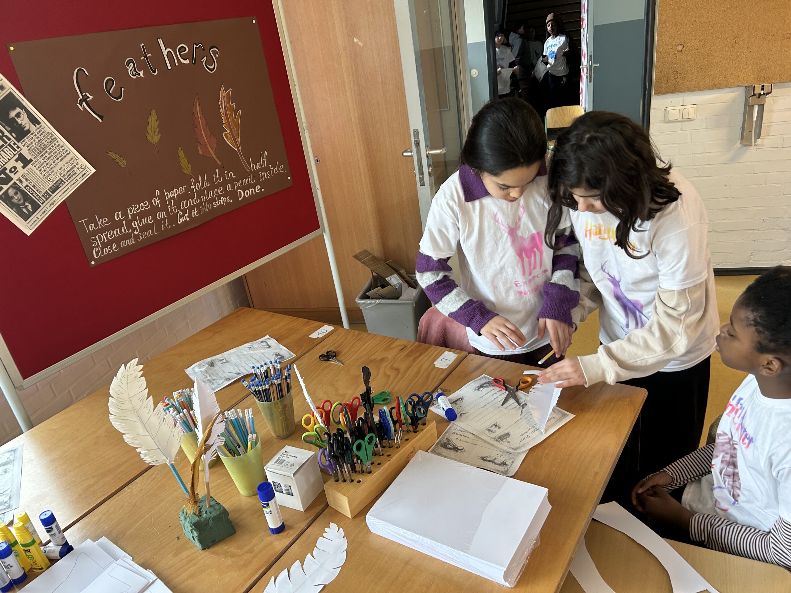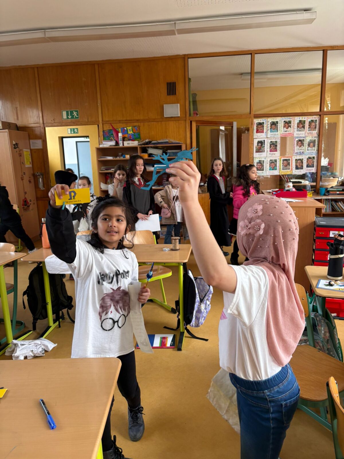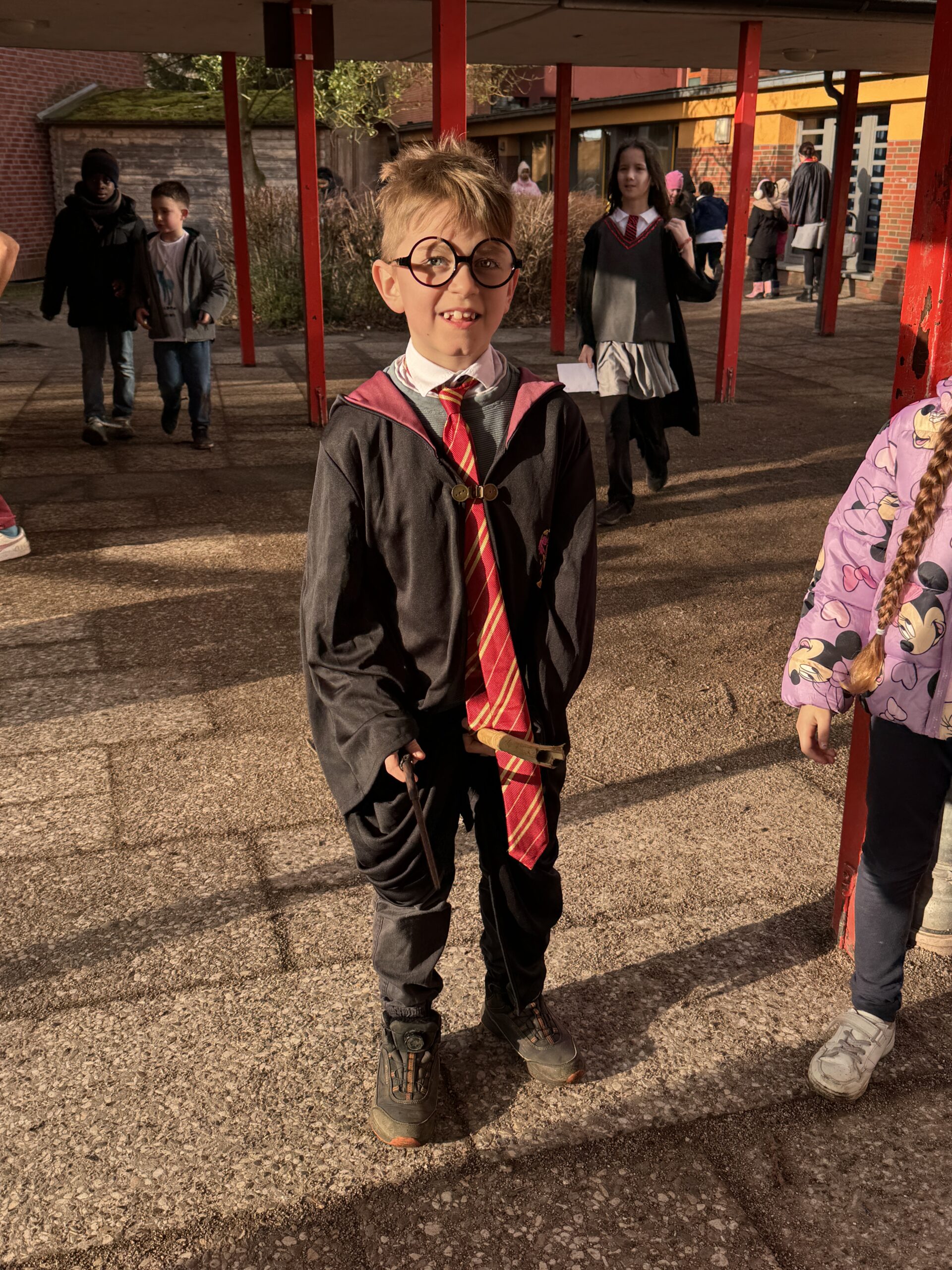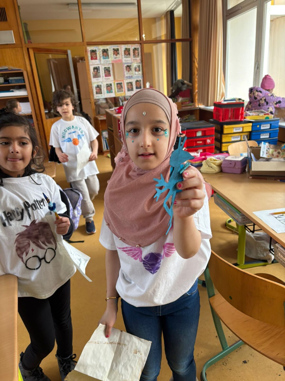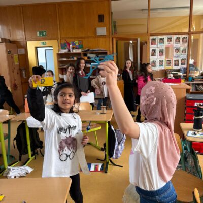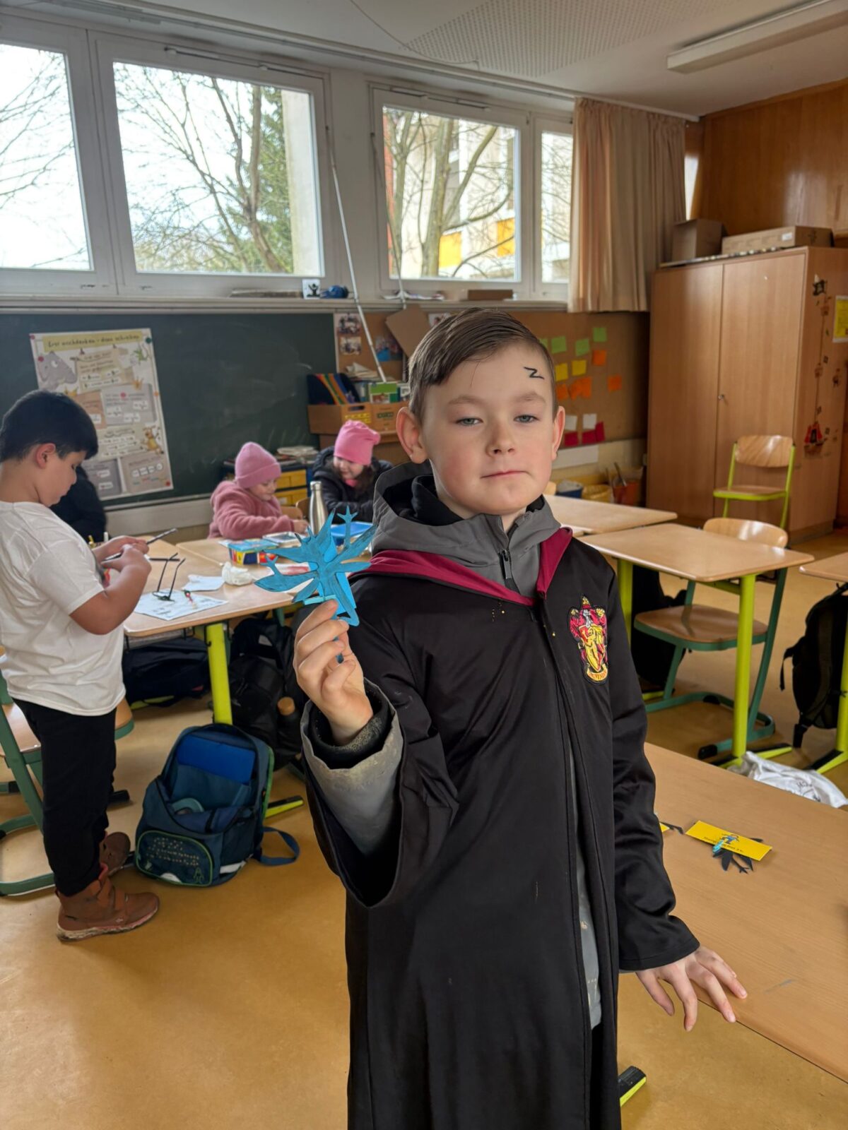 Nach einem gemeinsamen Auftakt in der Turnhalle begaben sich die Schülerinnen und Schüler auf eine magische Reise durch die Schule. Sie konnten ihre Geschicklichkeit beim Quidditch-Spiel unter Beweis stellen, magische Pflanzen und Zauberstäbe gestalten sowie gemeinsam knifflige Rätsel lösen. Sie stellten sich verschiedenen Aufgaben, probierten Zaubersprüche aus und traten in freundlichen „Battles“ gegeneinander an. Mit viel Begeisterung und Teamgeist tauchten die Kinder so für einen Tag in die Welt von Hogwarts ein.