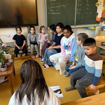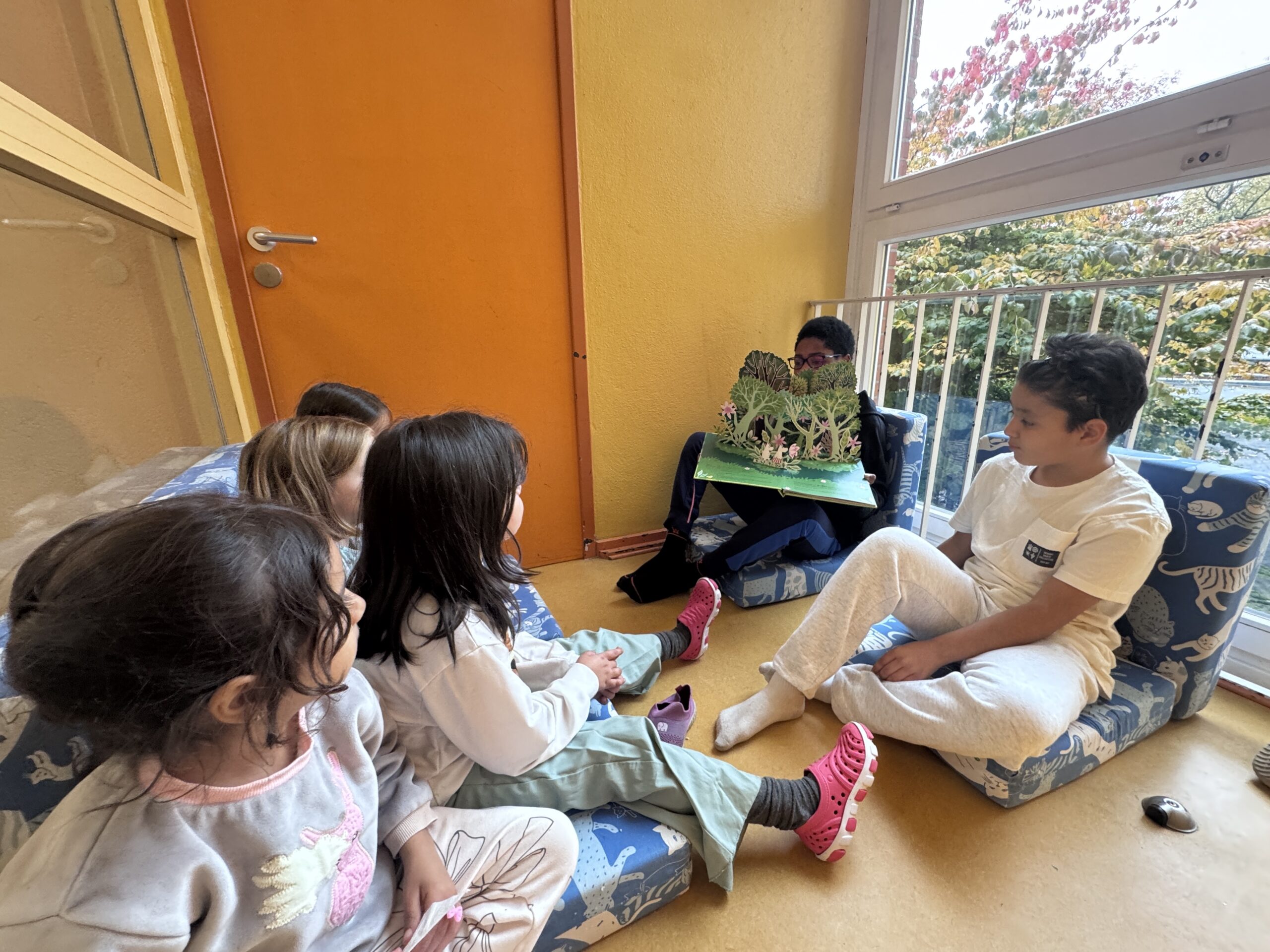 In kleinen Gruppen machten es sich die Kinder gemütlich und lauschten gespannt den Geschichten. Die Vorleserinnen und Vorleser hatten ihre Texte sorgfältig ausgesucht und geübt. Das konnte man hören! Ob lustig, spannend oder träumerisch, für jede Zuhörerin und jeden Zuhörer war etwas dabei.